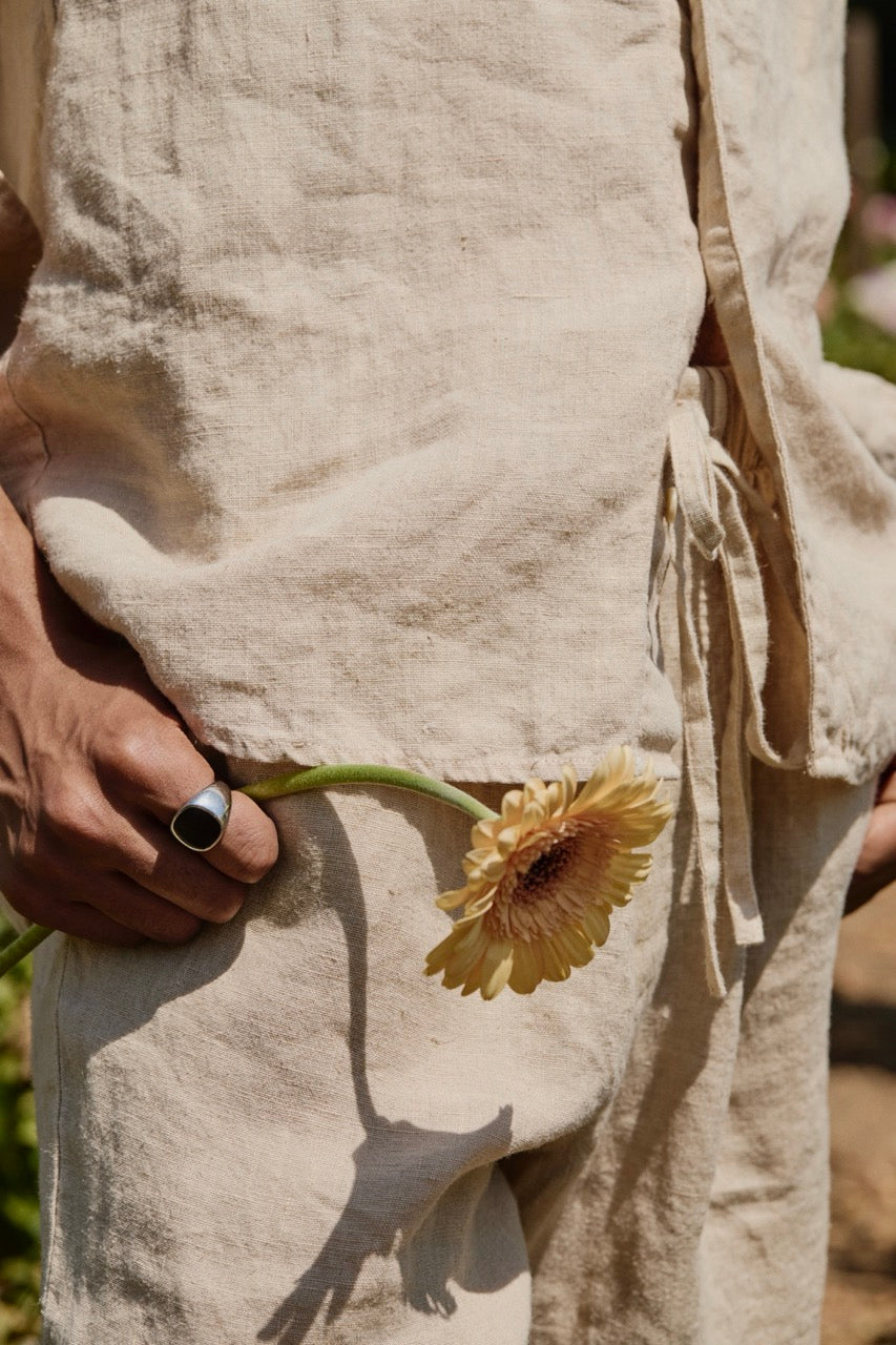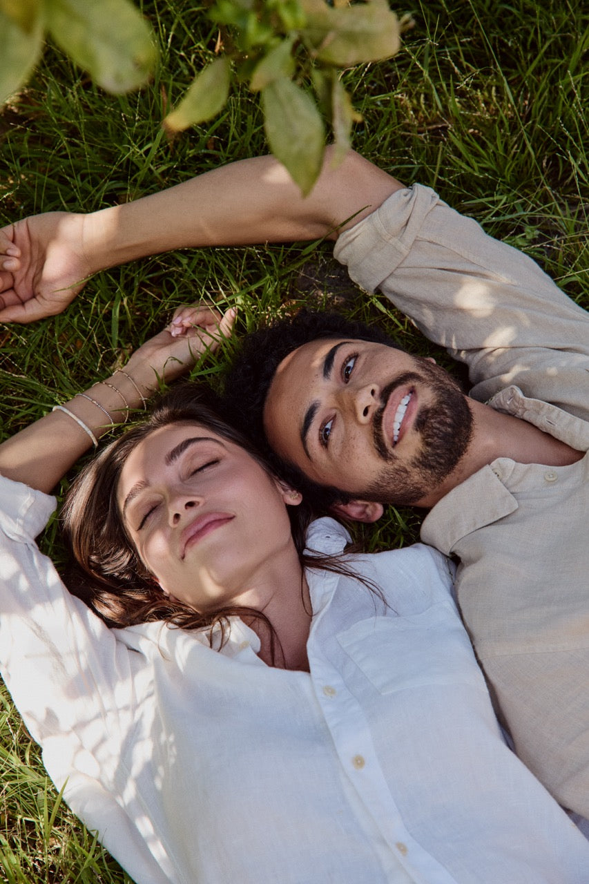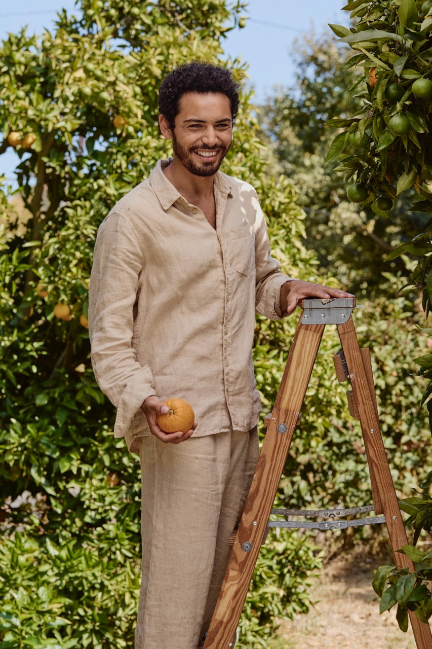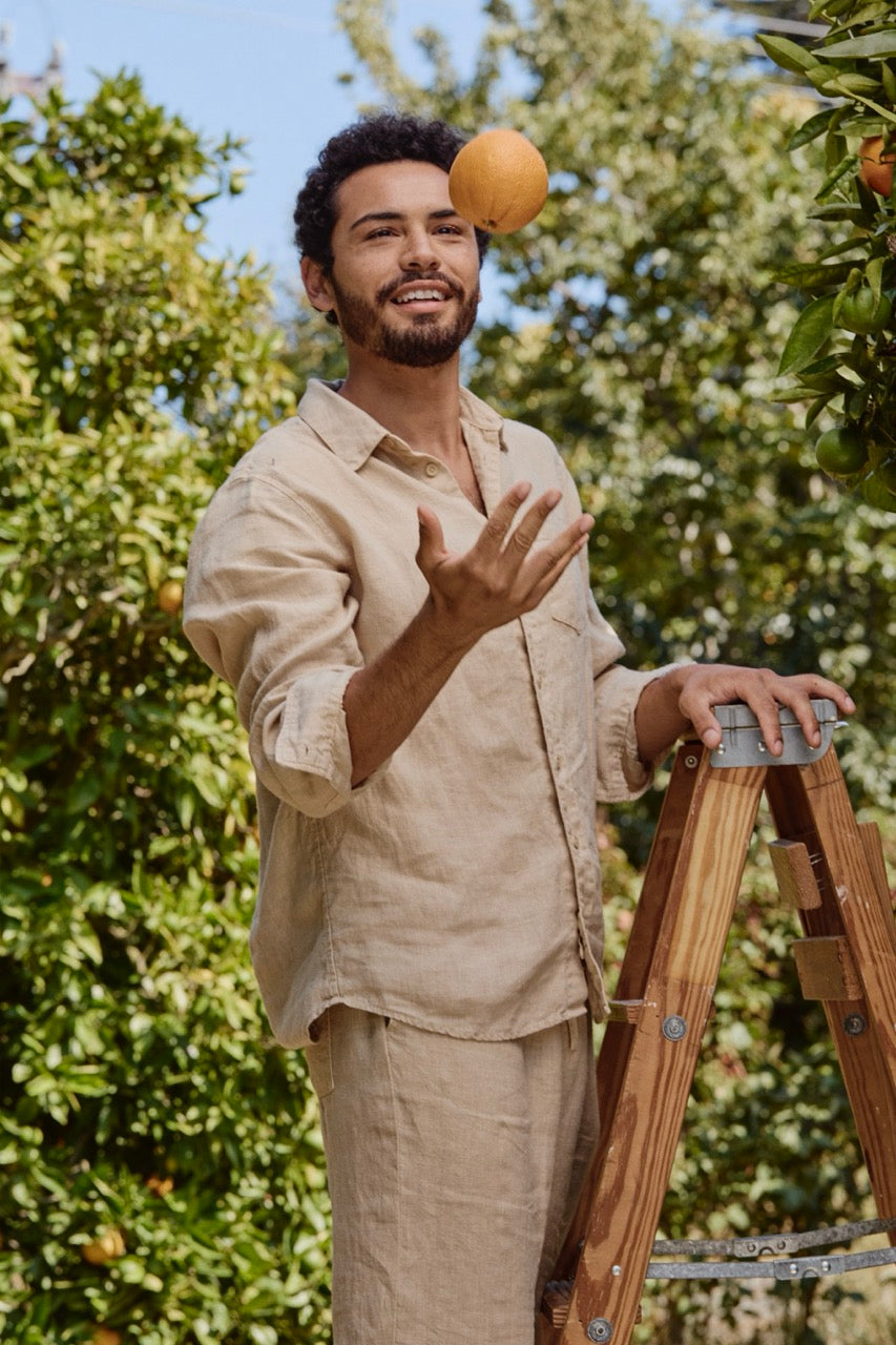 Introducing wearable energy. Elevate your everyday with our signature unisex shirt, consciously crafted in super frequency linen (hello, 5000 Hz!) to boost your well-being—body, mind and soul. Want to align with your most balanced timeline? Attune to the frequency of Balanced Beige, naturally hand-dyed using chestnuts.